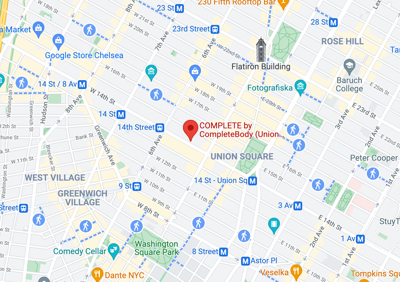However, I perform the bulk of my daily work at my clinic located at Union Square 25 W 14th St, 2nd Floor.